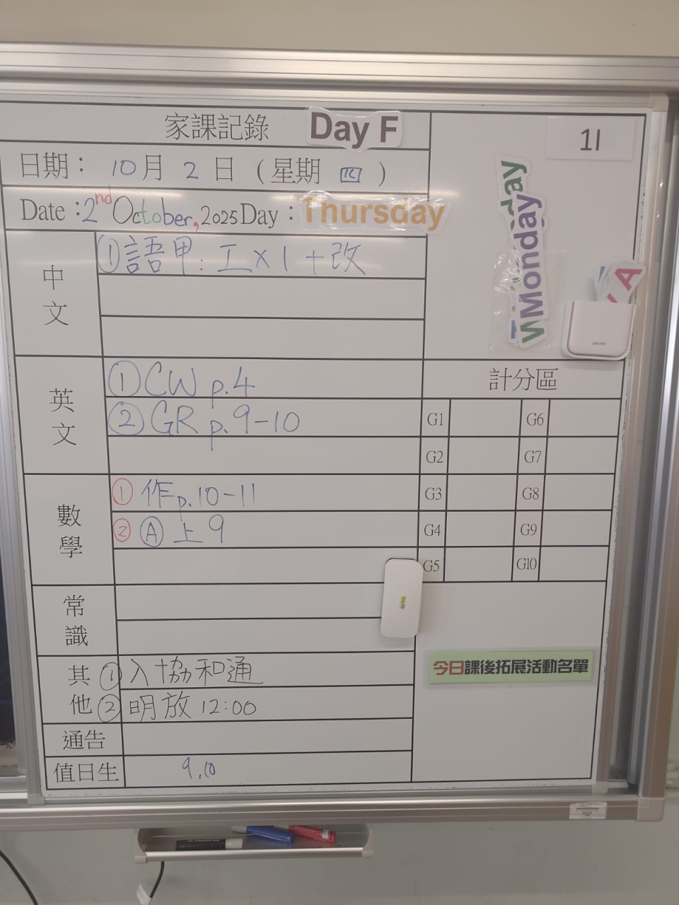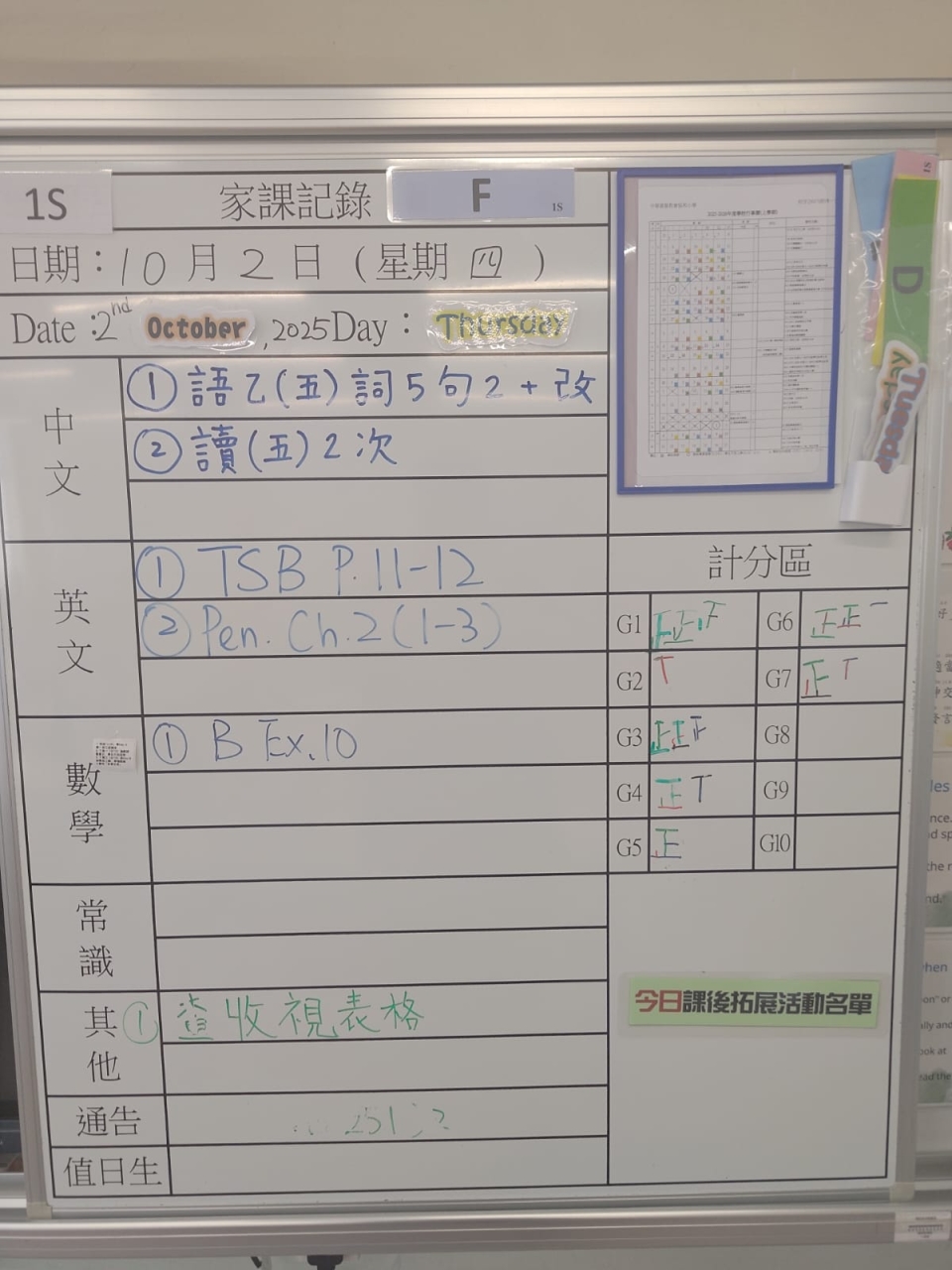 班別家課