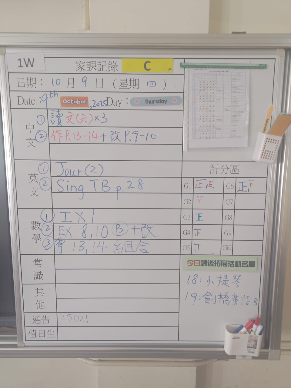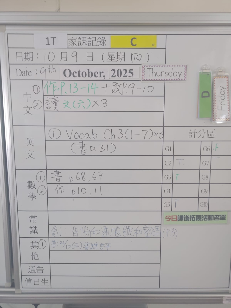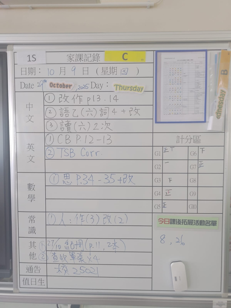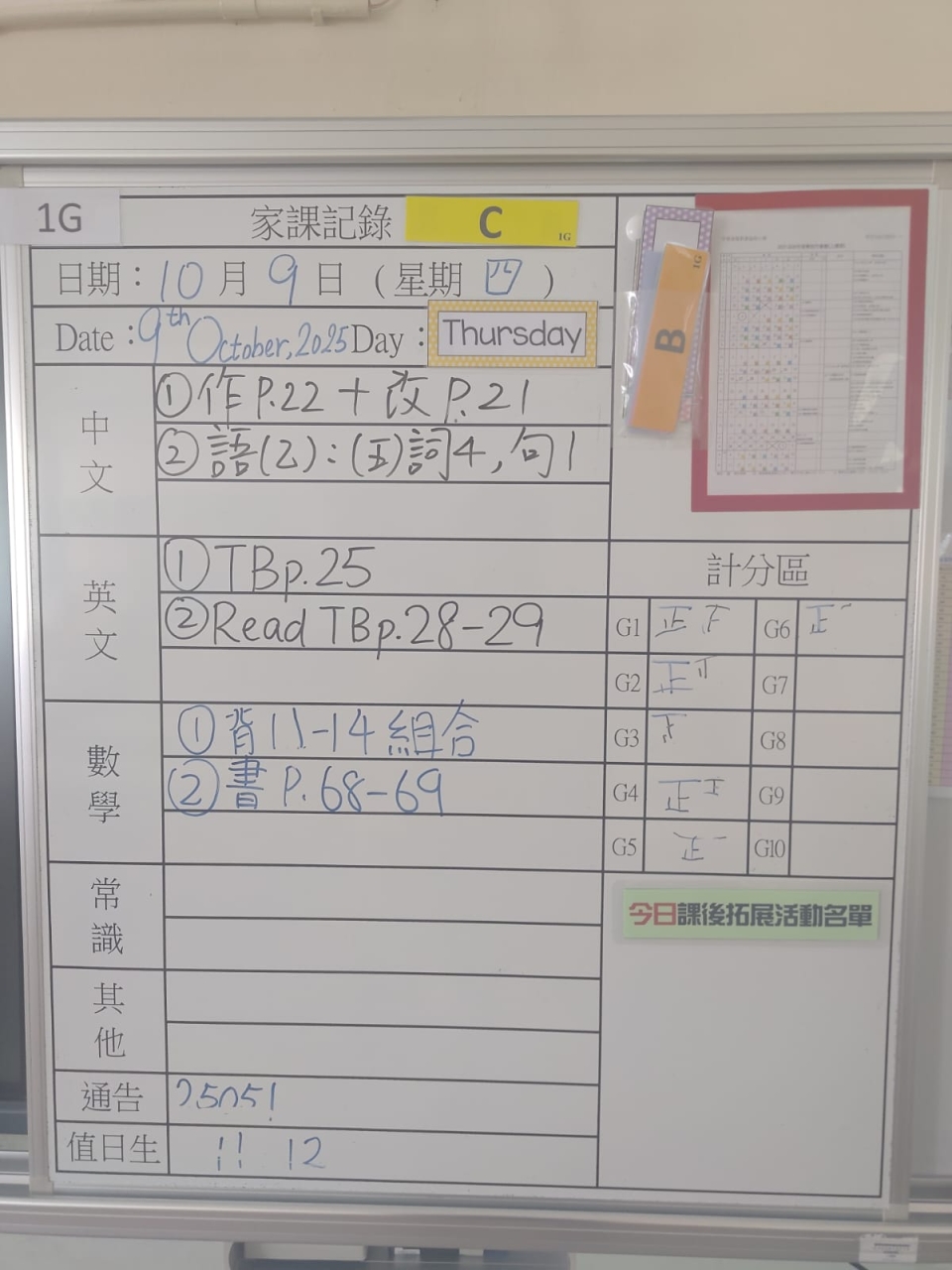 班別家課