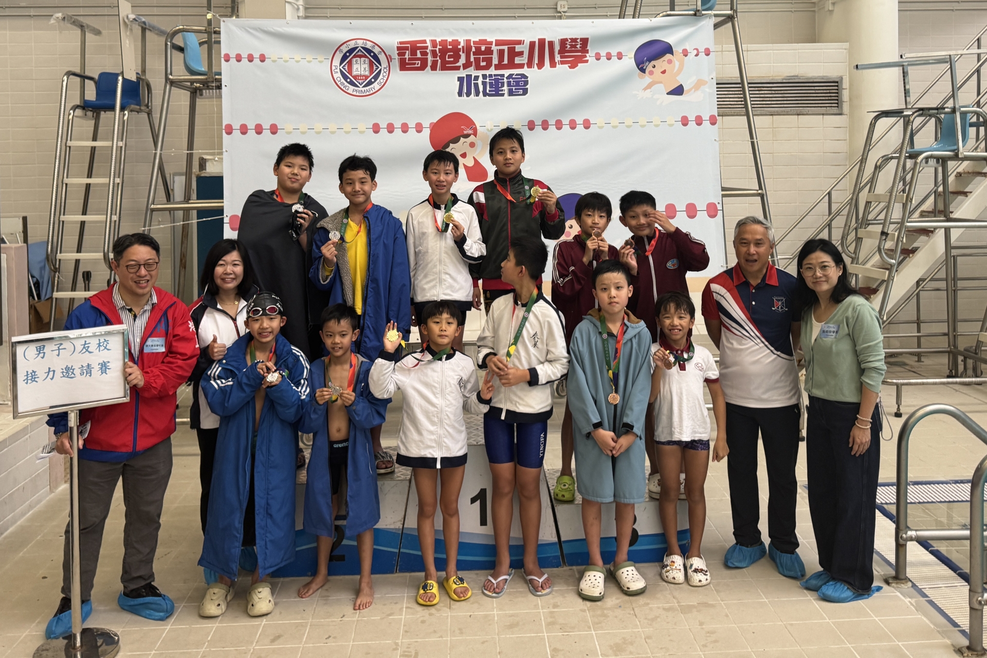 同學 參與 香港培正小學水運會友校接力邀請賽 奪得 邀請賽男子4X50米自接