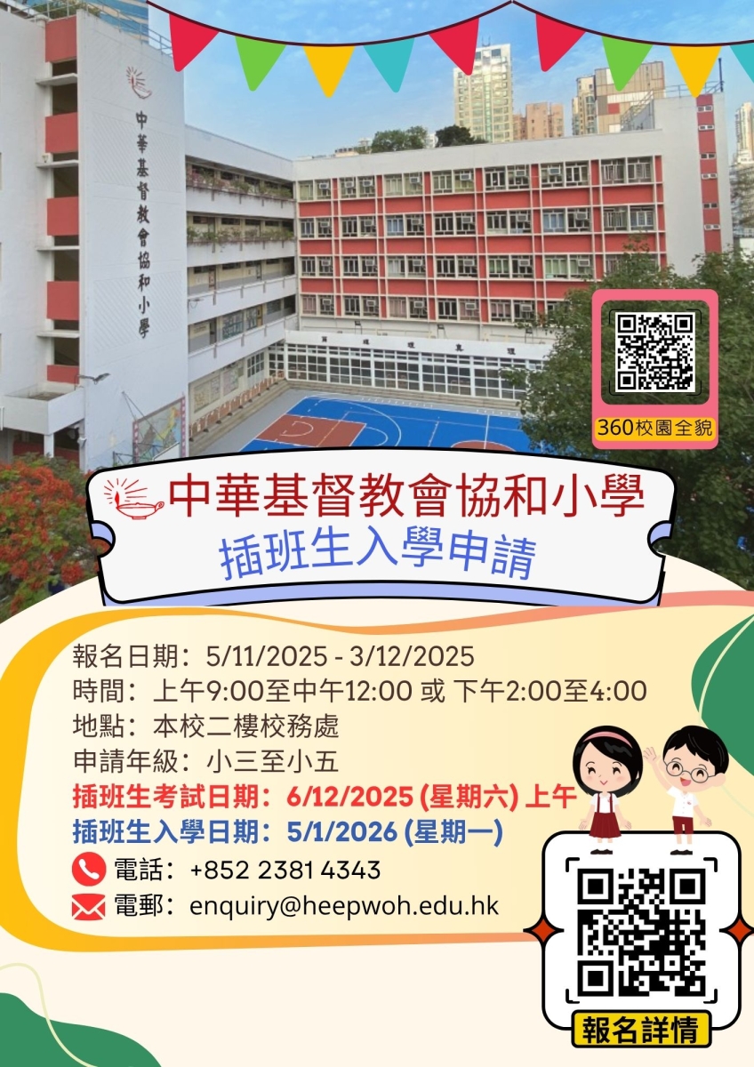 05/11/20252025-2026年度下學期(1月)入學小三至小五插班生申請